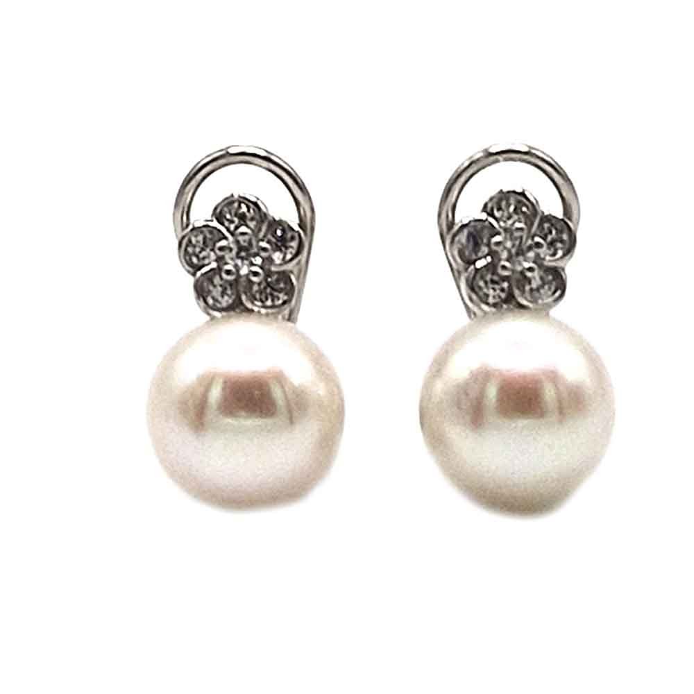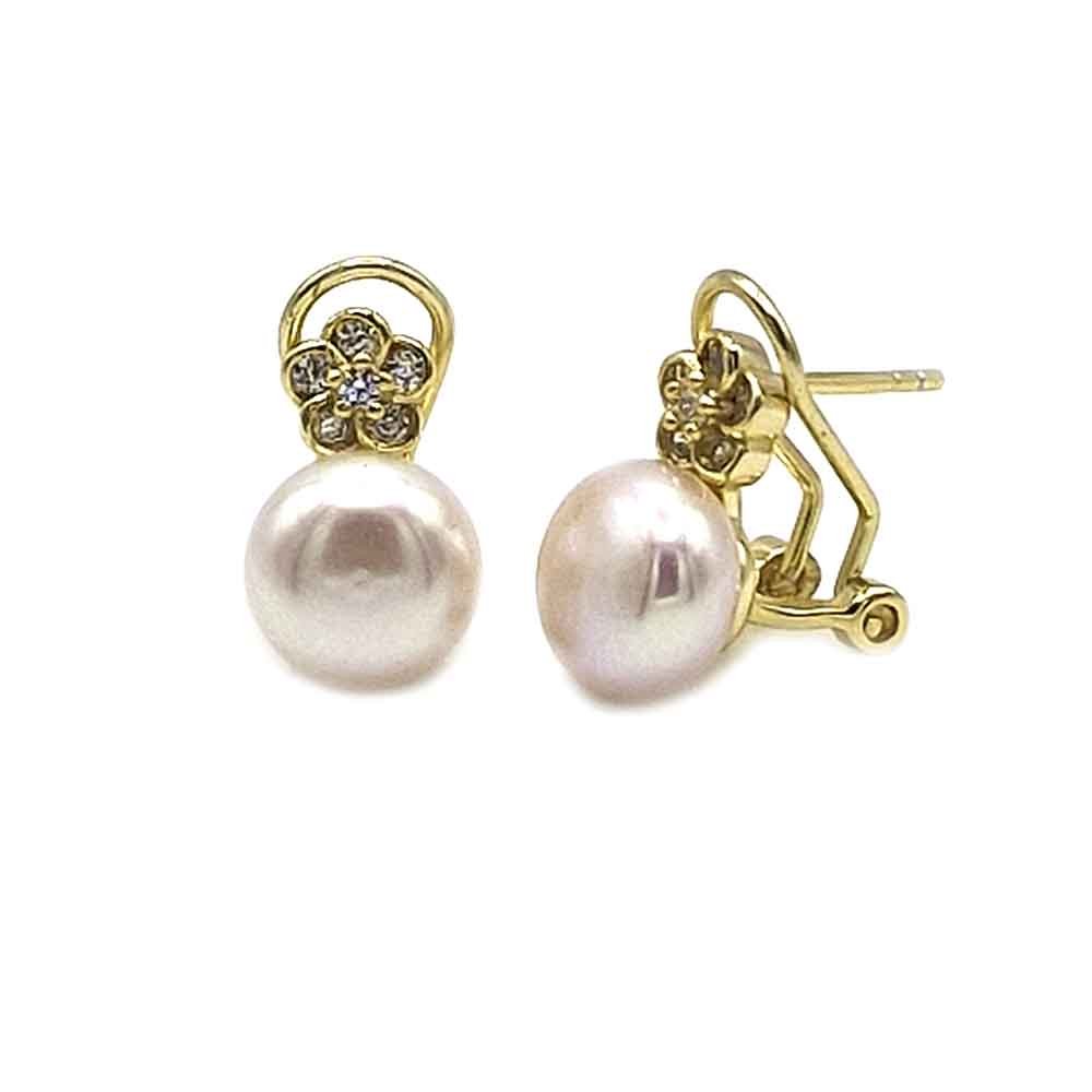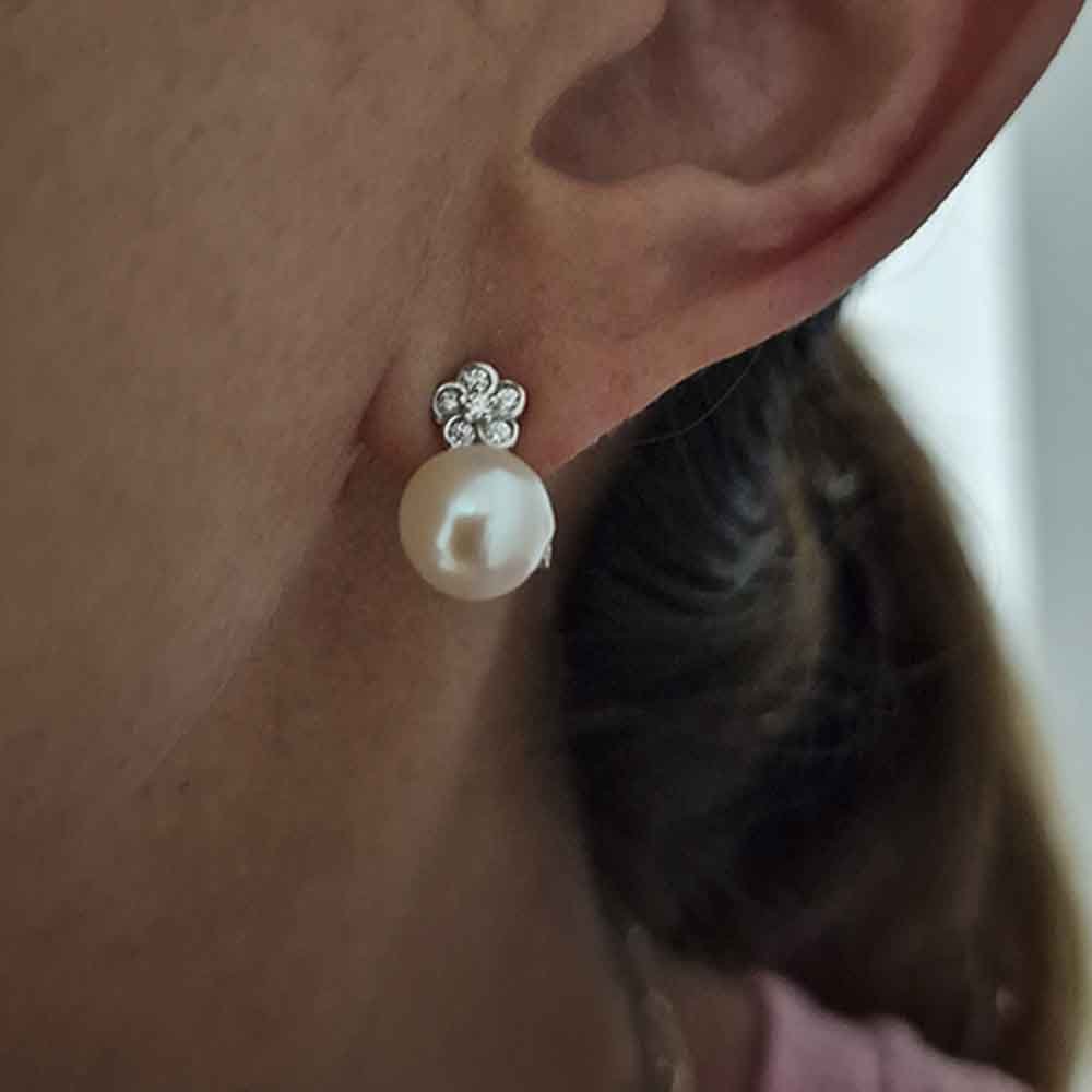 Pendiente Omega Flor del Mar en plata 925, con un diseño elegante que combina una perla Shell de 9 mm y una delicada flor de circonitas de 6 mm. Su brillo sutil evoca la pureza del océano y la feminidad natural. Ideal para ocasiones especiales o para añadir un toque de distinción al día a día, también lo hay en dorado un baño de 3 micras de oro de 18k.