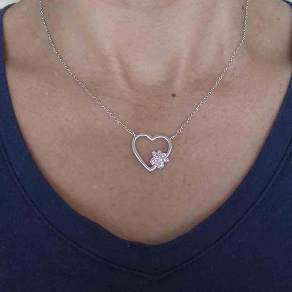 Gargantilla Corazón Huella de plata 925 con cadena de 1 mm de grosor y un corazón liso de 17 mm que aporta un estilo suave y elegante. A su lado incorpora una pequeña huellita adornada con circonitas, símbolo del amor y la conexión con nuestros animalitos. Su largo ajustable de 42 + 3 cm ofrece un uso cómodo y versátil, ideal para llevar a diario.