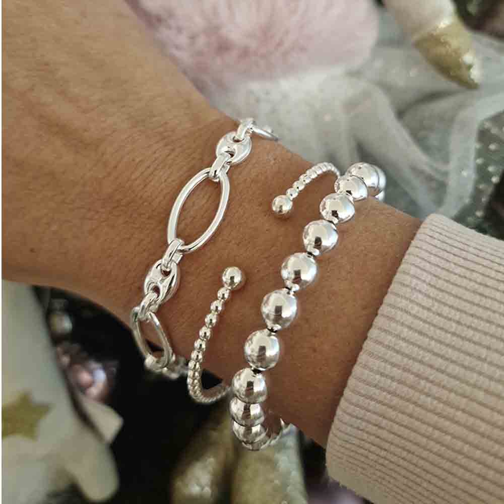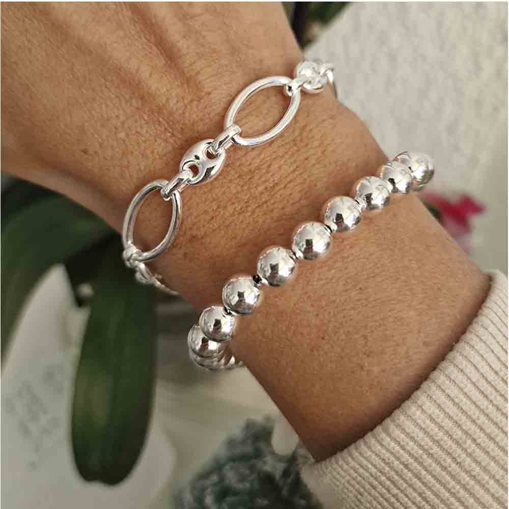Pulsera de bolas italiana 8mm, diseñada para ofrecer un estilo sofisticado y atemporal. Su largo ajustable de 17 + 3 cm permite un calce cómodo y versátil, ideal para cualquier ocasión.