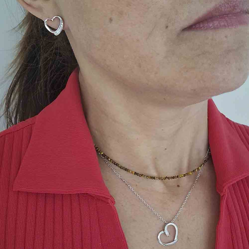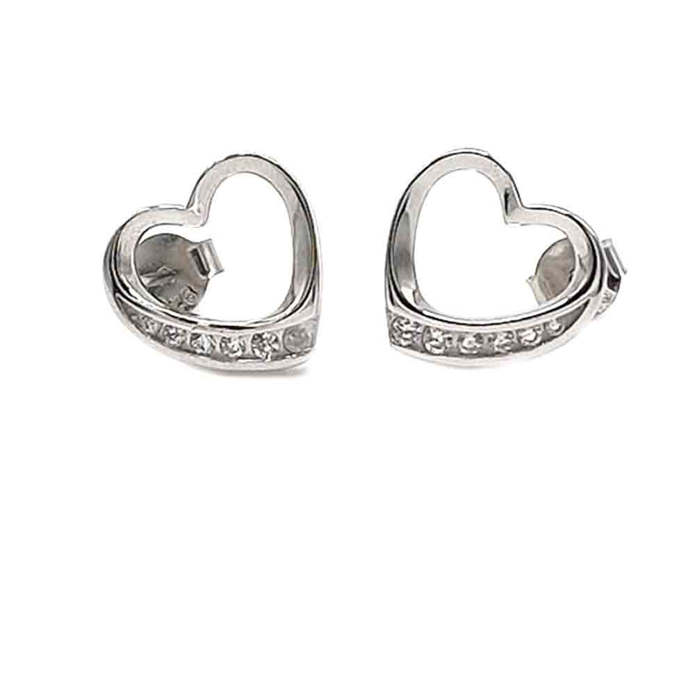 Brinco Cuore em forma de coração, decorado com zircões de um lado que conferem um brilho delicado e elegante. Mede 12 mm e apresenta um fecho de encaixe para um ajuste confortável e seguro. Feito de prata 925, disponível para compra sozinha ou combinado com um colar, ideal para um visual romântico e sofisticado.