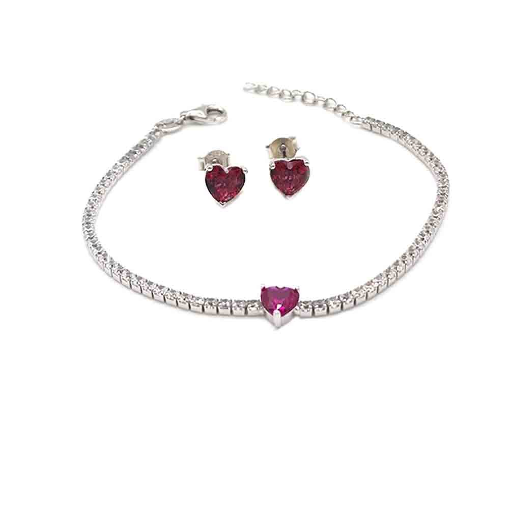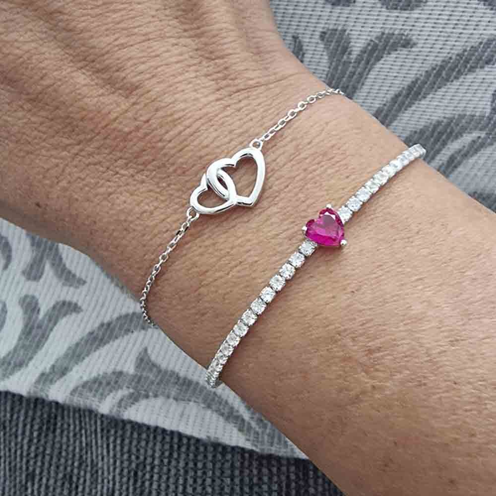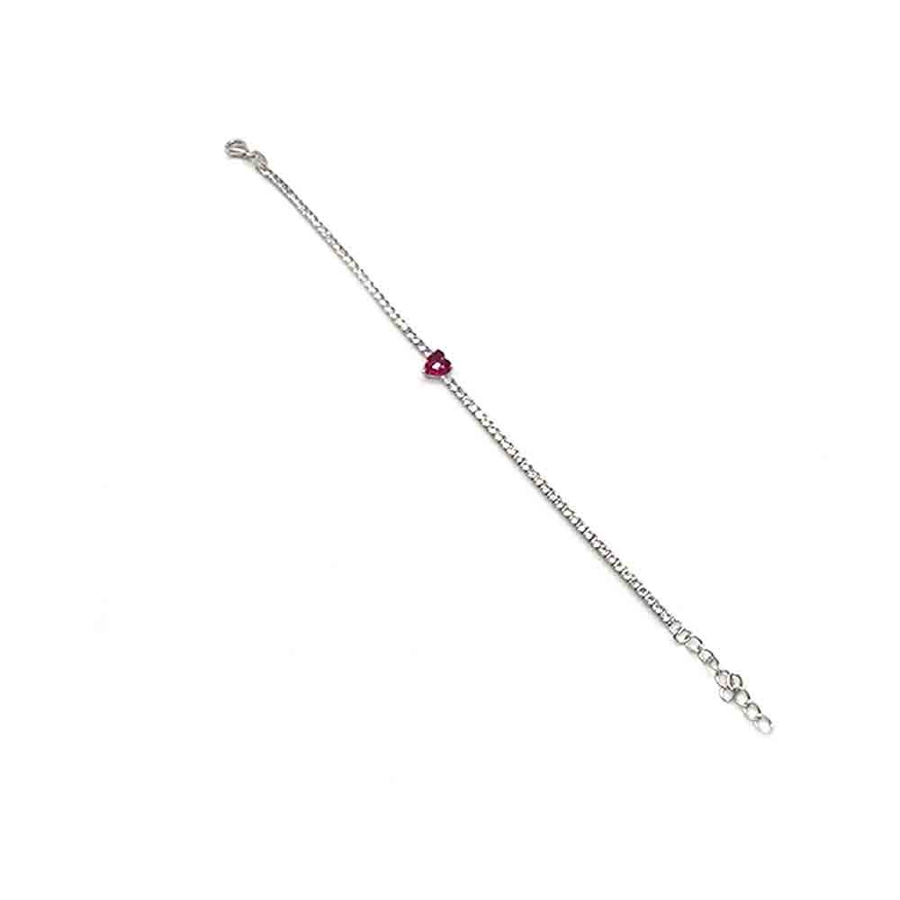 Pulsera Riviere con corazón rojo de 5 mm, elaborada en plata 925 y acompañada de circonitas redondas que aportan un brillo elegante y uniforme. Su diseño delicado tiene un grosor de 2 mm y un largo ajustable de 16.5 + 3 cm que permite un ajuste cómodo. Una pieza romántica y sofisticada ideal para cualquier ocasión.